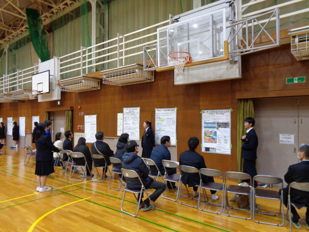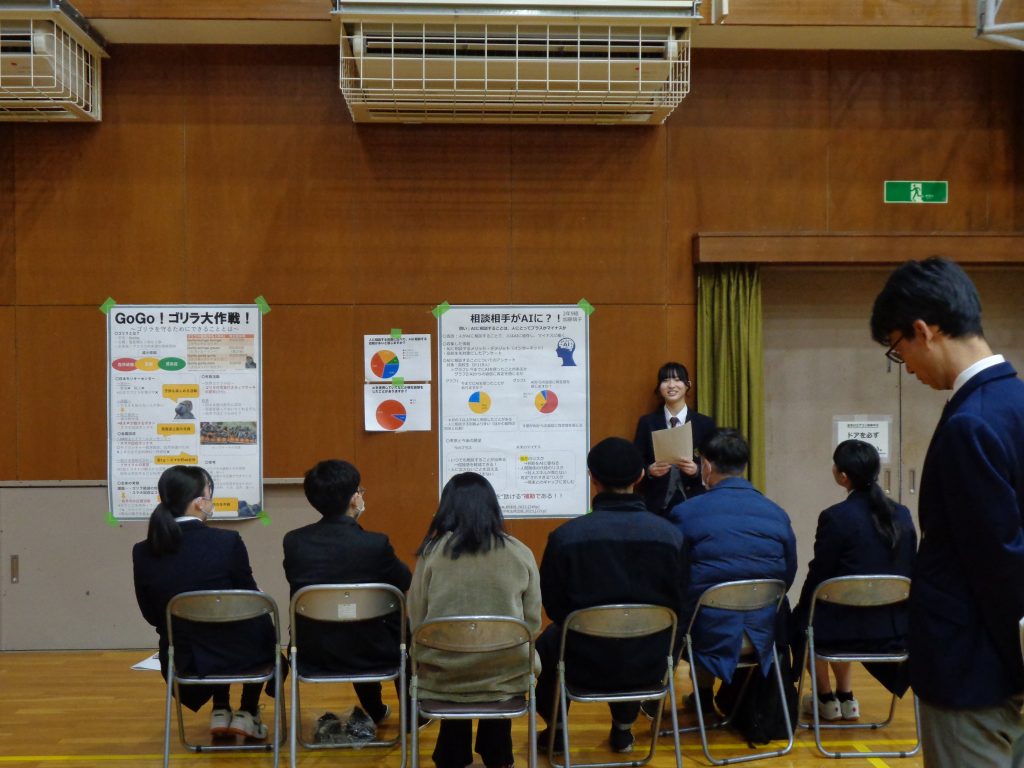 3/5(木)に国際探究科公開発表がありました。探究科の生徒が様々な企業や施設に訪問したり、図書館で論文を取り寄せたりしてまとめた1年間の成果を発表しました。